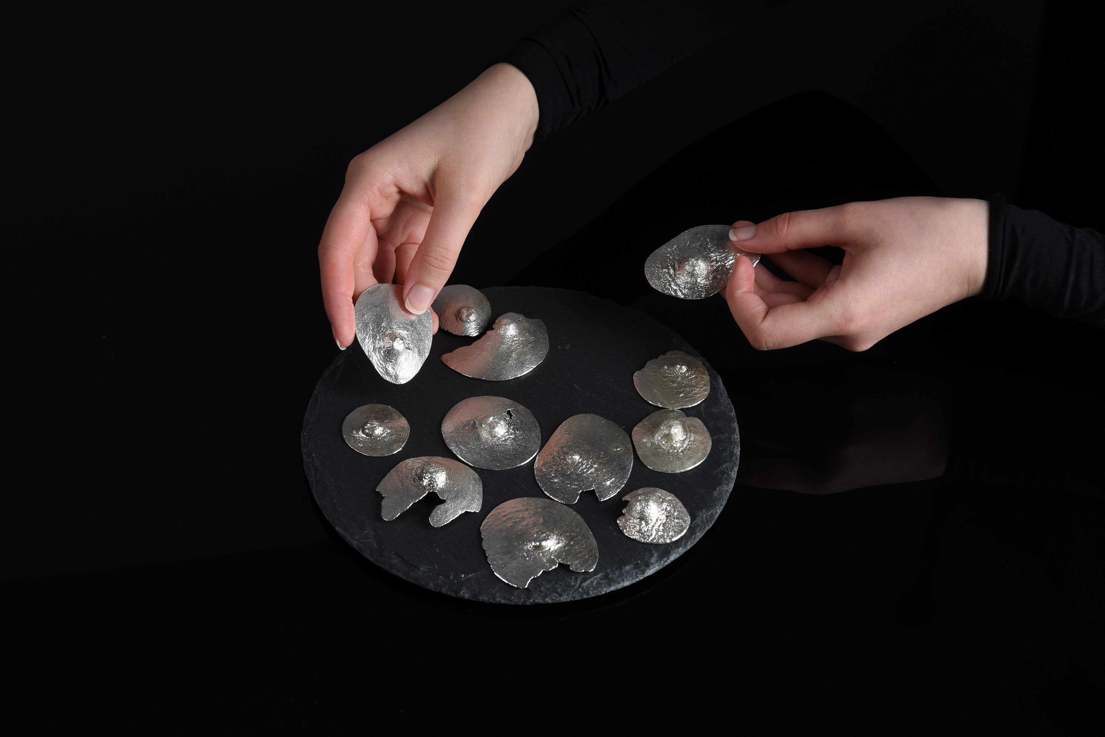 The project Silvareola, explores the perception of female bodies. By casting different nipples in metal and transforming them into a tactile, functional object, the project questions a taboo and reframes it as something both ordinary and essential.